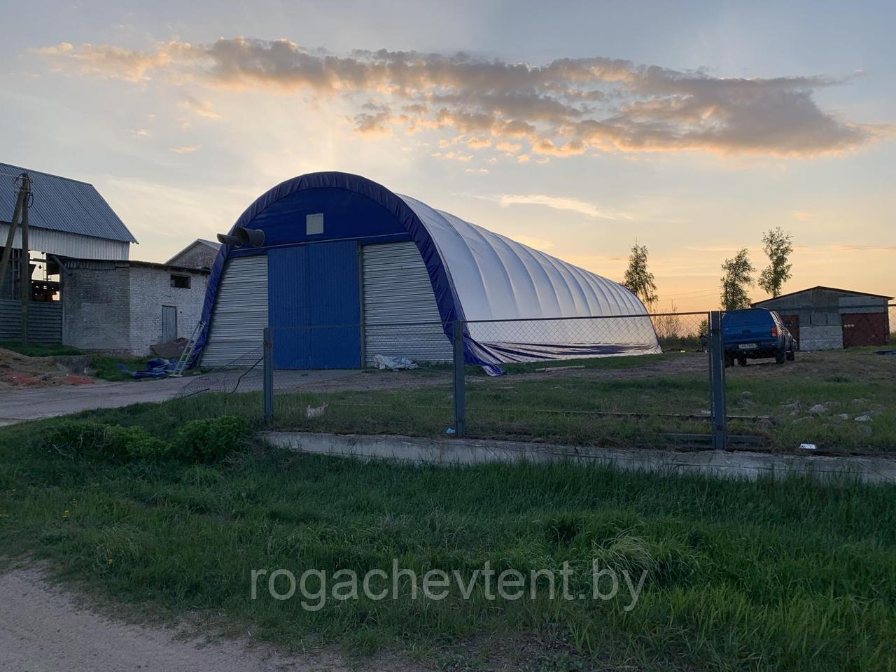 ВАЖНО! Система натяжения тентового полотна на ангаре – «труба-цепь». Натяжные трубы диаметром 32 мм с толщиной стенки 3,5 мм просаживаются в тентовый карман и производится натяжение тентового полотна с дальнейшей фиксацией труба оцинкованной цепью диаметром не менее 6 мм.